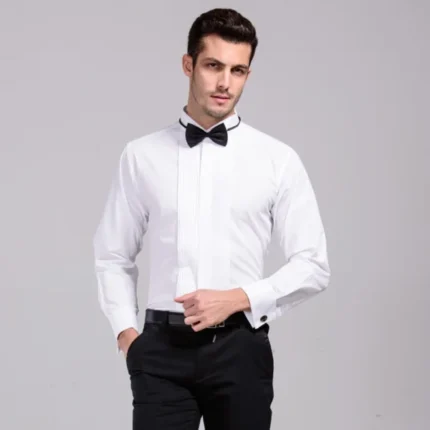 New Arrival French Cuff Wing Tip Collar Men’s Formal Dress Shirts Tuxedo Shirts Bridegroom Wedding Shirts For Men Stage Costume