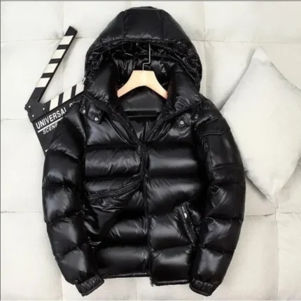 Mens Glossy Parka Casual White Duck Hooded Down Jacket Waterproof Windproof Ski Thick Warm Outwear Men Winter Fashion Shiny Coat
