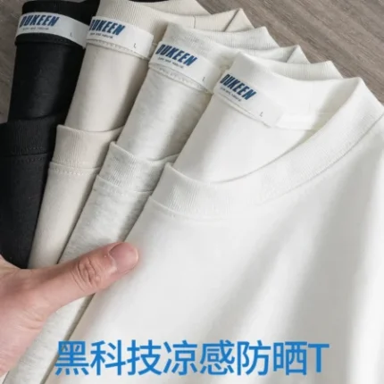 Dukeen Upf50+ Sorona Fabric Coolness T-Shirt Men Short Sleeve Summer Sun Ice Silk Solid Color Antibacterial Tshirt Men’s Clothes
