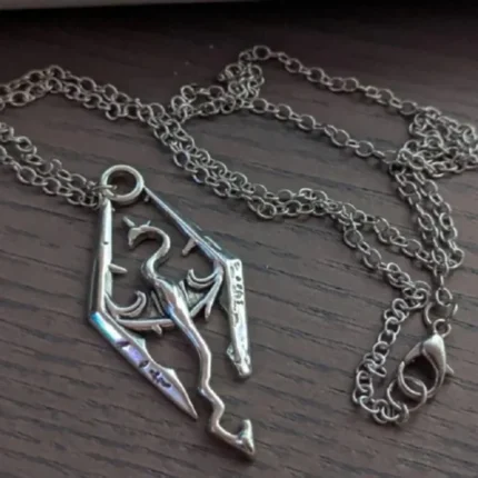 Vintage Dragon Viking Necklace, Gothic jewelry, Skyrim, games, Silver Pterosaurs, prismatic pendants, Dragon accessory, For Man