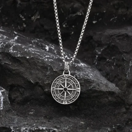 Vintage Compass Pendant Necklaces for Men Boys, Stainless Steel Coin Necklace, Rock Hiphop Collar Graduation Guide Gift