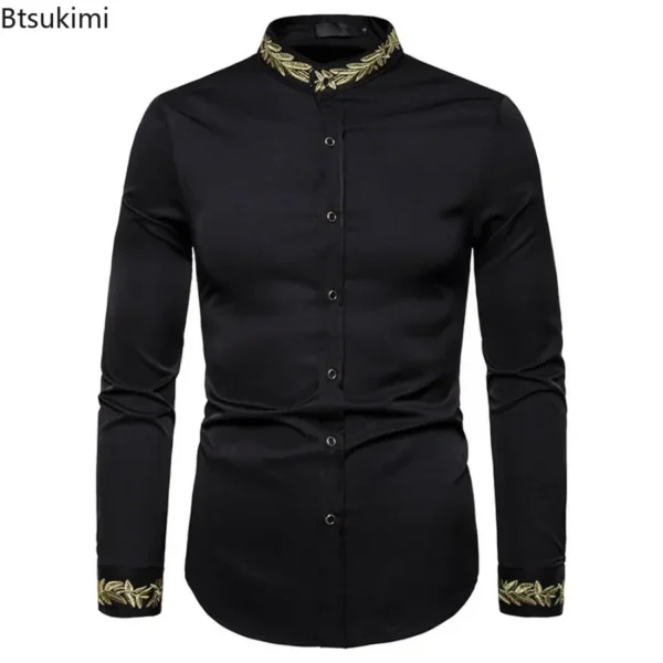2025 Men’s Summer Casual Long Sleeve Shirts Slim Fit Turn Down Collar Shirts Formal Office Business Shirts for Men Tops Big Size