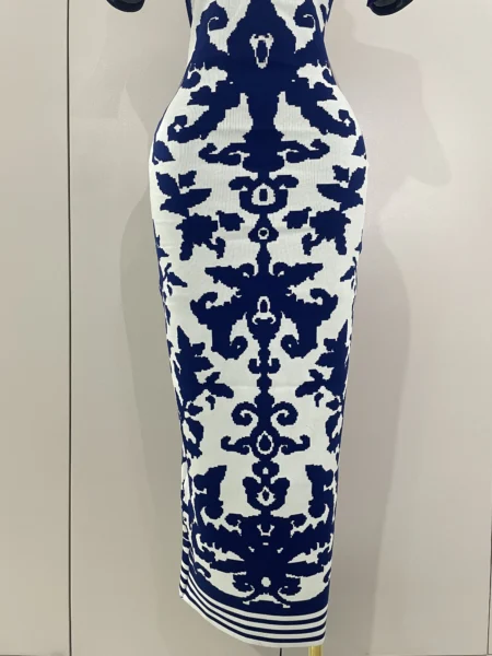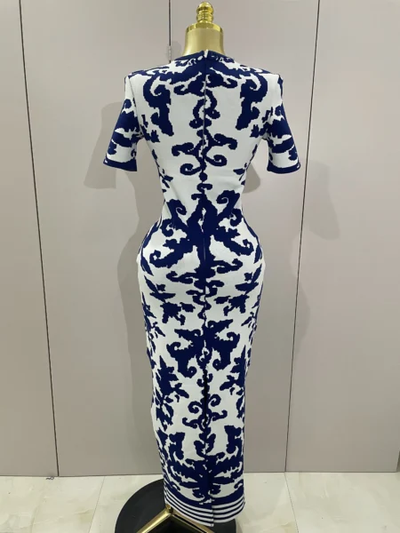 2025 New Sexy Short Sleeve Jacquard Blue Bandage Bodycon Long Dress Women Celebrity Elegant Evening Club Party Luxury Dresses