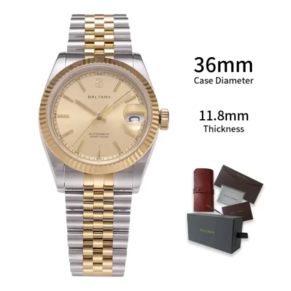 Model: Baltany Gold Fluted Bezel 36mm Retro Dress Watch S4084