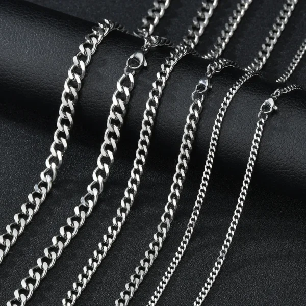 Basic Punk Stainless Steel 3,5,7mm Curb Cuban Necklaces For Men Women Black Gold Color Link Chain Chokers Solid Metal Jewelry