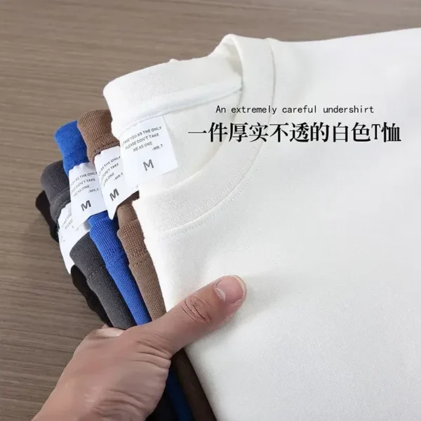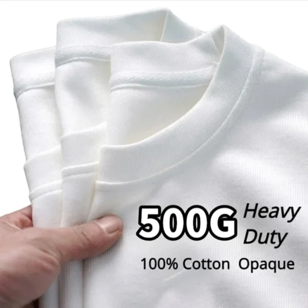 Pure white 500g heavy T-shirt, pure cotton, thickened threaded neckline, half sleeve short sleeves,