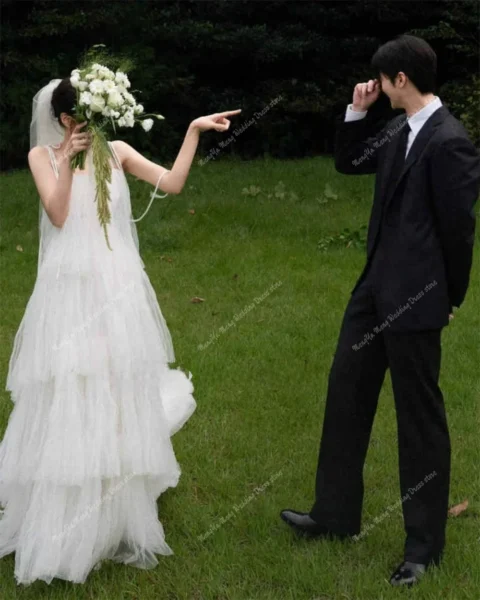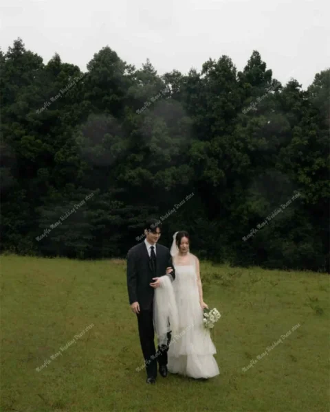Customized Soft Layered Tulle Floor Length Wedding Dresses Korea Photoshoot Spaghetti Straps Bridal Gown Vestido De Noiva 2025