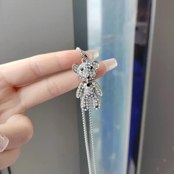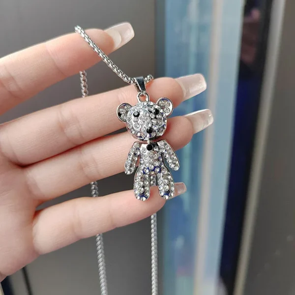 Cute full diamond teddy bear necklace, long earth cool trendy brand sweater chain pendant, hip-hop personality necklace