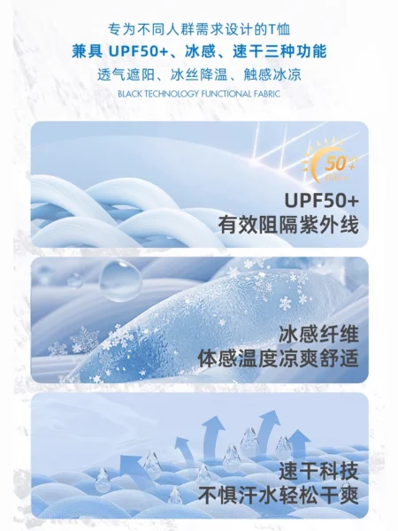 Dukeen Upf50+ Sorona Fabric Coolness T-Shirt Men Short Sleeve Summer Sun Ice Silk Solid Color Antibacterial Tshirt Men’s Clothes