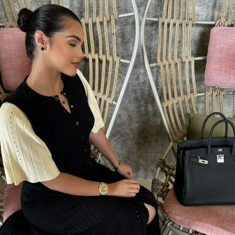 Elegant Knitted Dress Women Solid Single Breasted O Neck Short Sleeve High Waist Hip Package Dresses 2025 Autumn Chic Robes Lady