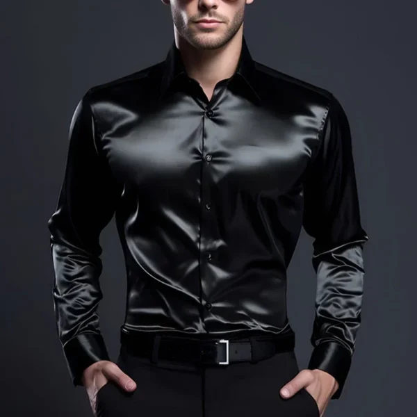 Elegant Satin Silk Men’s Dress Shirt Slim Fit Long Sleeve Cocktail Party Luxury Button Down Casual Suit Shirt