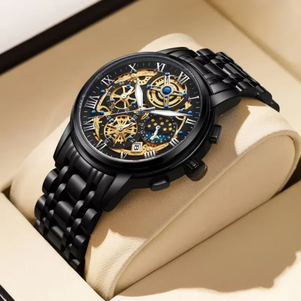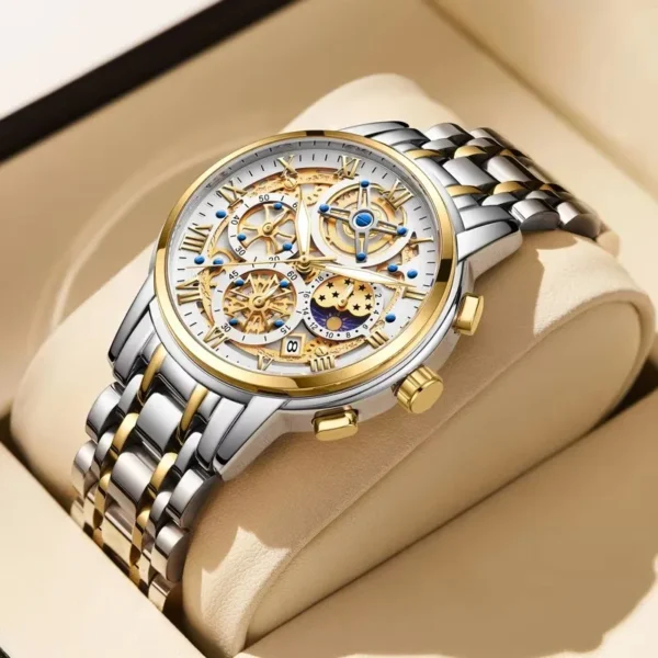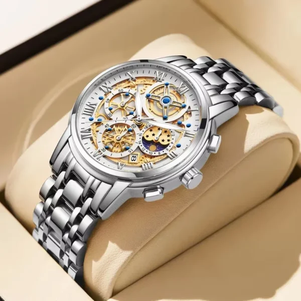 – Function:Moon Phase, Luminous, Waterproof,Chronograph(All the small dial can work,NOT decoration)