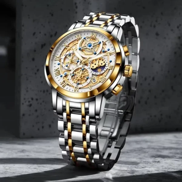 LIGE Gold Mens Watches Luxury Luminous Moon Watch for Men Business Casual Quartz Wristwatch Waterproof Male Clock Chronograph