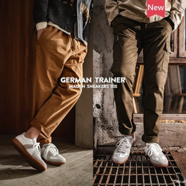 Maden Vintage Patchwork German Trainer Sneakers Unisex Summer Sports Casual Shoes Split Leather Lace-up Outdoor Flat Shoes