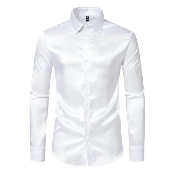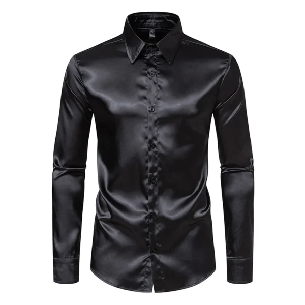 Men’s Black Satin Luxury Dress Shirts Fashion Silk Smooth Tuxedo Shirt Solid Wedding Party Prom Casual Shirt Business Office