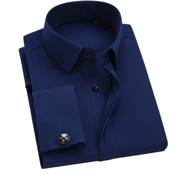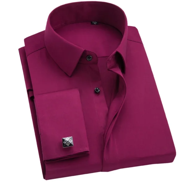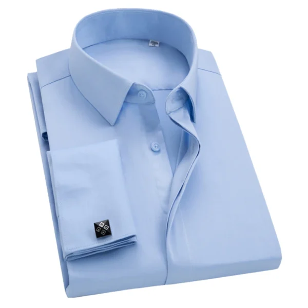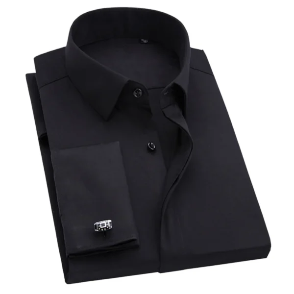 Men’s French Cufflink Shirt Bamboo Fiber Long-Sleeved Business Formal Dress Shirts Men’s Tuxedo Button French Clothing Wedding