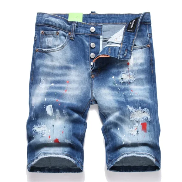 New Fashion Summer Male Denim Jeans Shorts Italian High Street Style Men Blue Straight Ripped Denim Shorts Jeans Casual Jeans 42