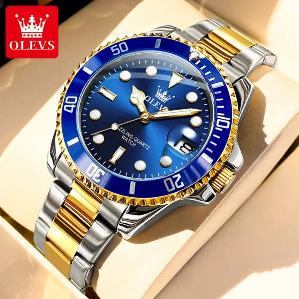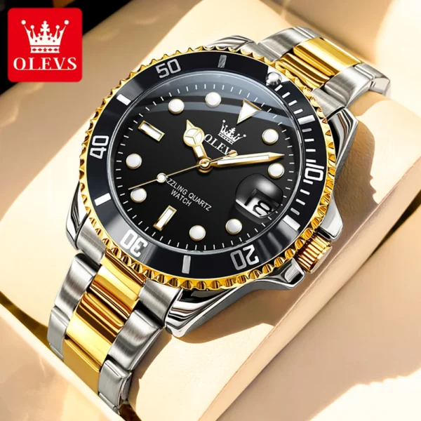 OLEVS 5885 Men’s Watches Business Stainless Steel Strap Green Quartz Watch Waterproof Calendar Luminous High Quality Wristwatch