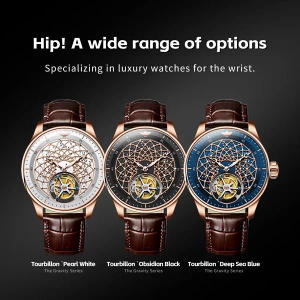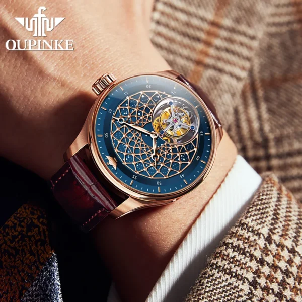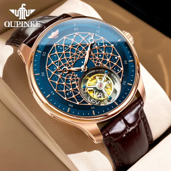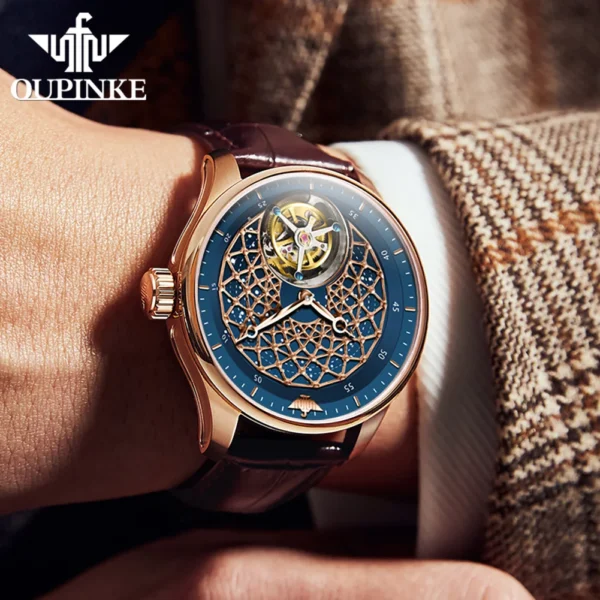 OUPINKE 8002 Watch Man Hollow Deep Waterproof Tourbillon Mechanical Watch For Men Synthetic Sapphire Mirror Fashion Hand Clock