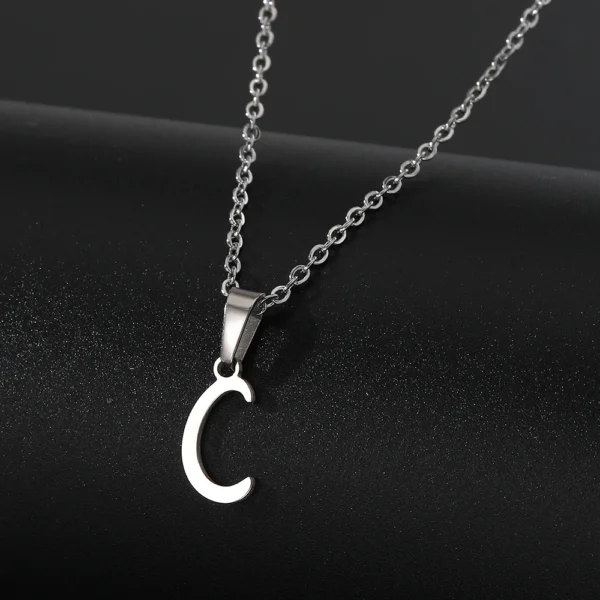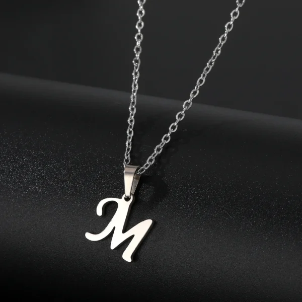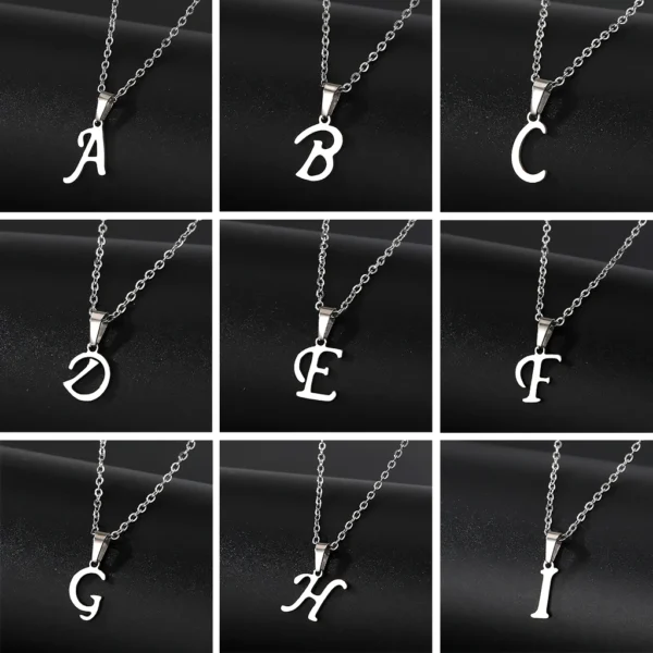 Stainless Steel English Alphabet 26 A-Z Letter Necklace Pendant Women Men Capital Initial Name Necklace Birthday Gift