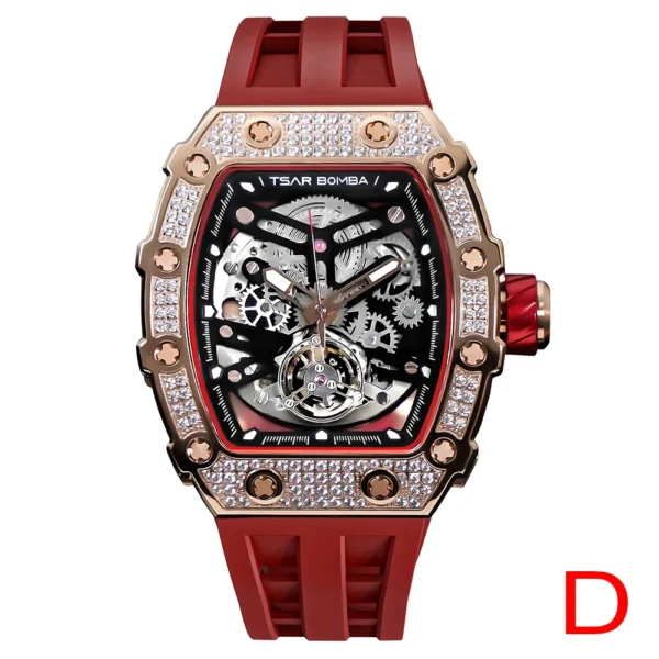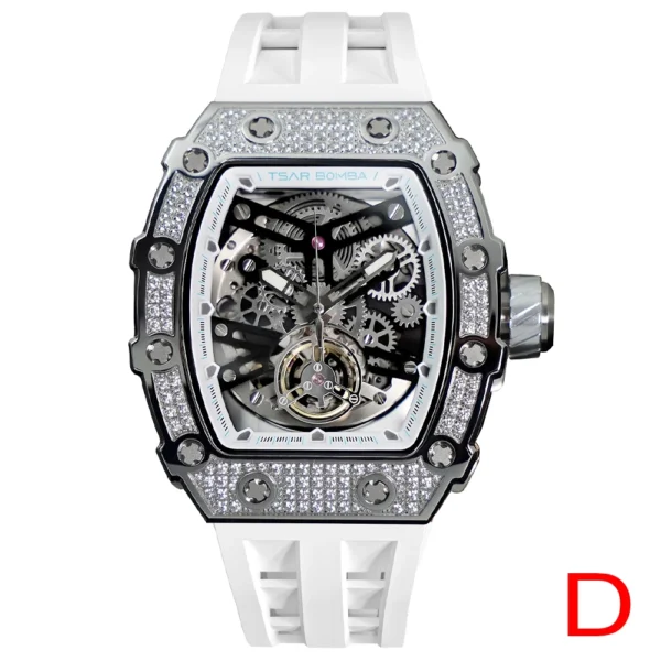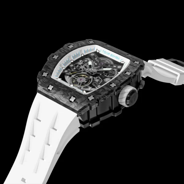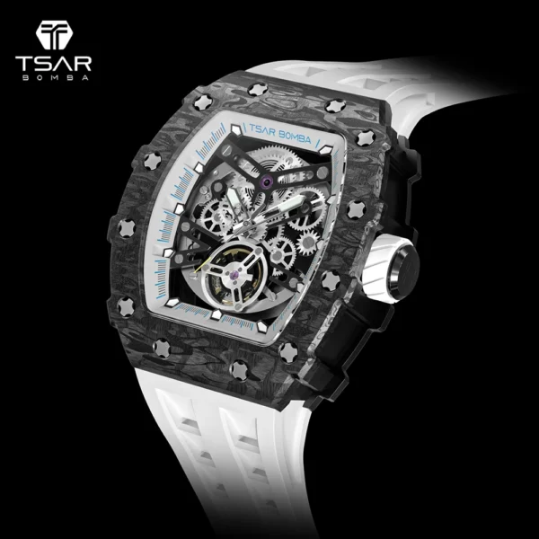 TSAR BOMBA 2022 Luxury Mens Automatic Watch Waterproof Carbon Fiber Clock Tonneau Skeleton Mechanical Wrist Watch for Men