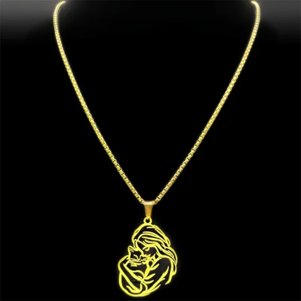 Women Hug Cat Pendant Necklace For Women Men Stainless Steel Gold Silver Color Hollow Kitty Female Love Pet Peace Chain Jewelry