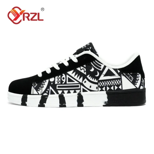 YRZL Men’s Sports Running Shoes Canvas Geometric Style Lace-Up Sneakers Couples’ Fashionable Graffiti Print Skate Shoes Men